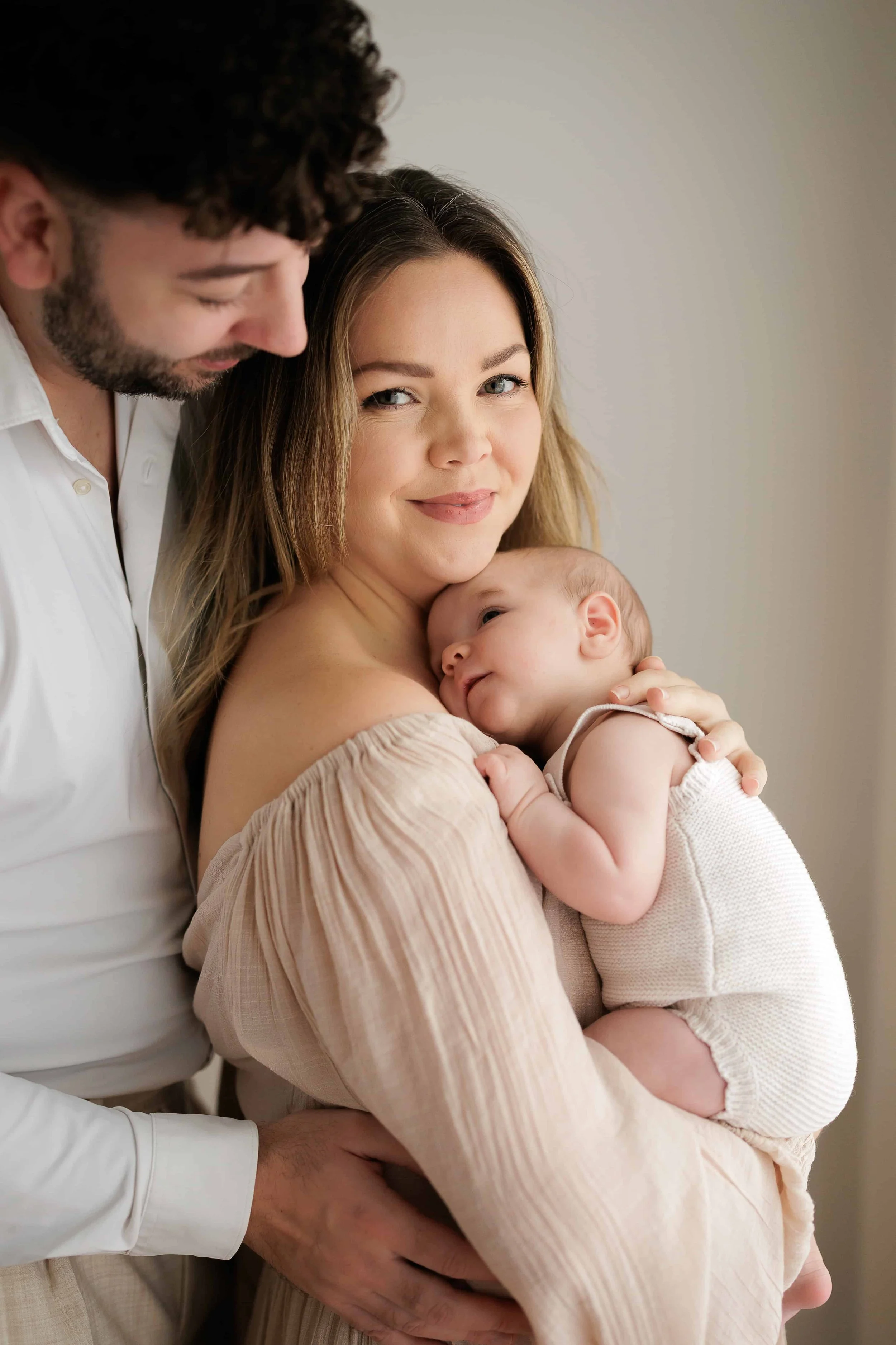 The studio is already set up with soft wraps, blankets, and a calm environment designed for newborns.