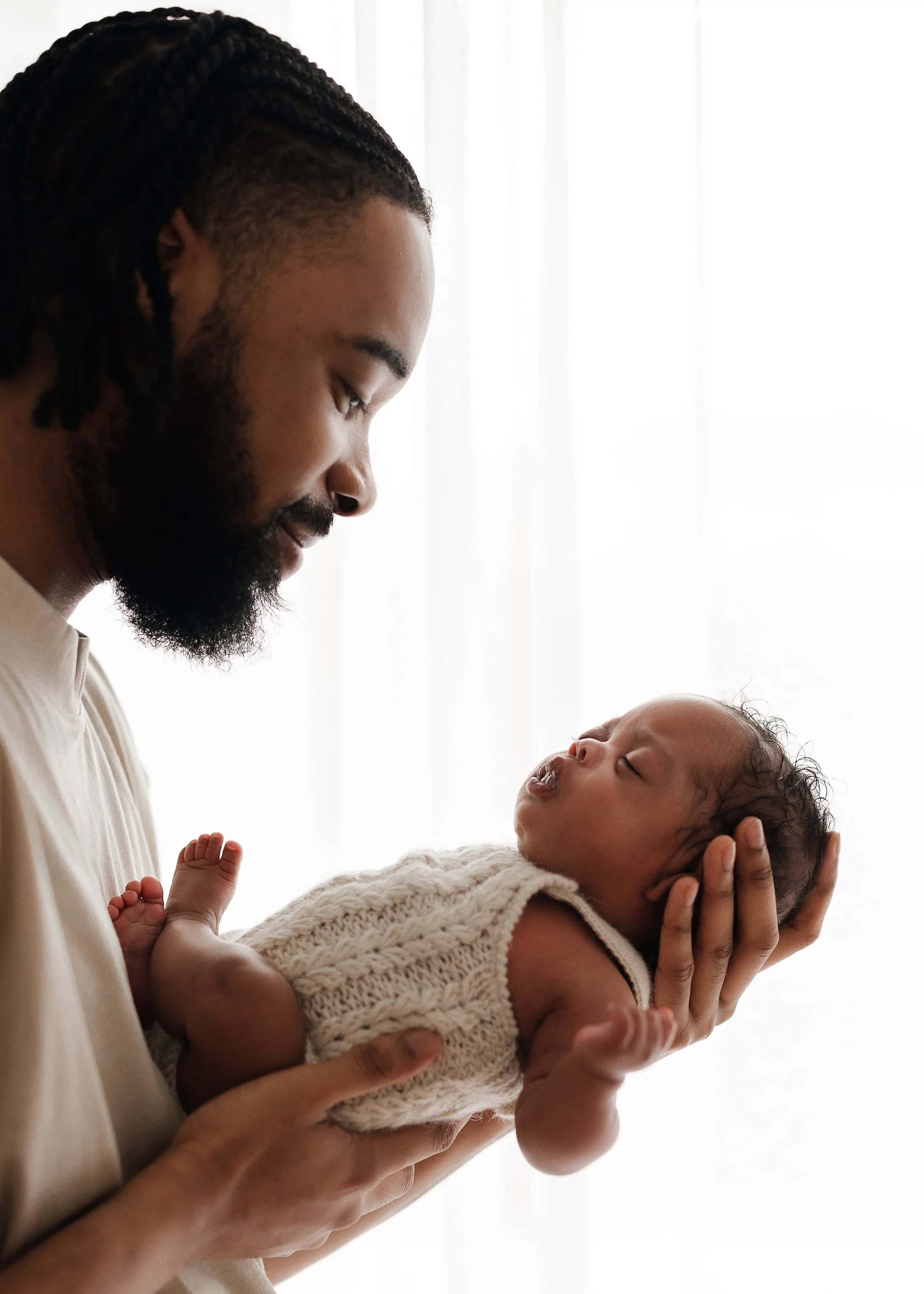 I like to start with your partner because baby will not smell the milk on them ! It makes it easier for them to relax and potentially fall asleep ( although we will not force it and I like to take photos with their eyes opened)